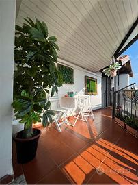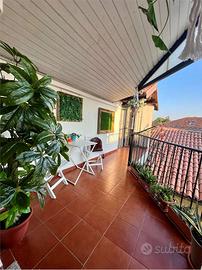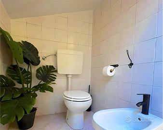 Ampio soggiorno con cucina a vista, disimpegno , piccola cabina armadio e bagno con vasca, entrambi mansardati, camera da letto matrimoniale.