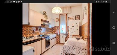 Appartamento arredato composto da cucina abitabile con induzione, bagno ristrutturato con vasca, camera matrimoniale (vuota), disimpegno con ingresso e ripostiglio, sala con balcone e tenda da sole.