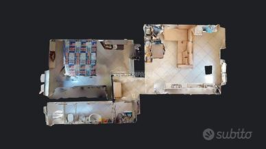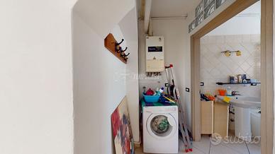Percorrendo il disimpegno, dove potrete disporre la lavatrice o un mobile, troverete il bagno dotato di box doccia; infine è presente la camera da letto, molto generosa negli spazi, adatta anche ad ospitare una postazione di smart-working.