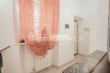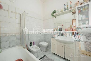 Proseguendo, c'è un bagno con vasca, comodo per le esigenze quotidiane, e un piccolo ripostiglio, utile per riporre oggetti e attrezzature. Dalla cucina, si può accedere al giardino comune, uno spazio esterno ideale per pause all'aria aperta.