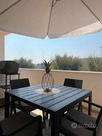 Il terrazzo a livello abitabile è un angolo accogliente, perfetto per le serate estive con amici e familiari.