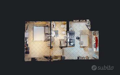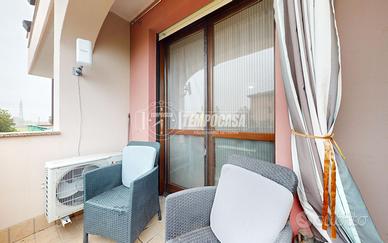 Dal soggiorno, si accede direttamente a un comodo balcone. Un disimpegno separa la zona giorno dalla zona notte, dove troviamo una spaziosa camera matrimoniale e un bagno completo di tutti i servizi.