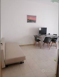L'appartamento ,completamente ammobiliato, è composto da: luminosa cucina/soggiorno con divano letto e balcone, camera da letto matrimoniale e bagno completo con vasca e doccia, aria condizionata in tutte le stanze, caldaia nuova.