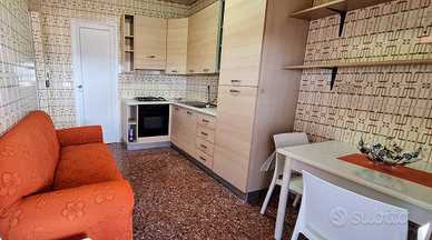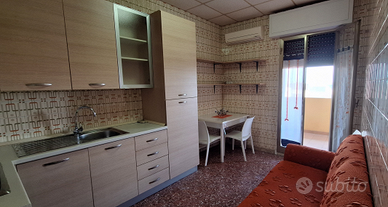 AFFITTASI per lunghi periodi (contratto classico di 4 anni rinnovabile), BILOCALE ARREDATO, con ampia VERANDA COPERTA, composto da cucina, camera matrimoniale, bagno con angolo lavanderia e ripostiglio.
