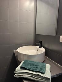 o Bagno con box doccia in cristallo, lavabo moderno, wc e bidet