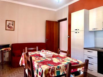 Camera da letto, cucina arredata, bagno con lavatrice, balcone.