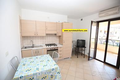 L'appartamento, arredato e climatizzato, è composto da soggiorno cucina, una camera da letto, un bagno cieco con doccia. Soggiorno e camera affacciano su uno splendido terrazzo vivibile e coperto.