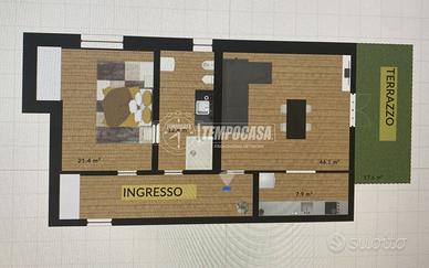 L'ingresso ci conduce ai principali locali; una ampia e luminosa camera matrimoniale con pavimentazione in parquet, bagno interamente ristrutturato, finestrato e provvisto di box doccia, soggiorno dal quale si ha accesso ad uno splendido terrazzo vivibile, perfetto per pranzi e momenti di relax all'aria aperta, angolo cottura realizzato interamente su misura e con materiali di pregio.