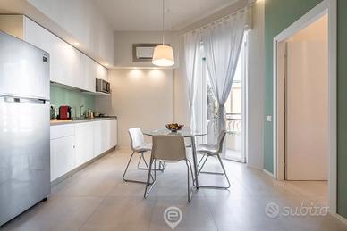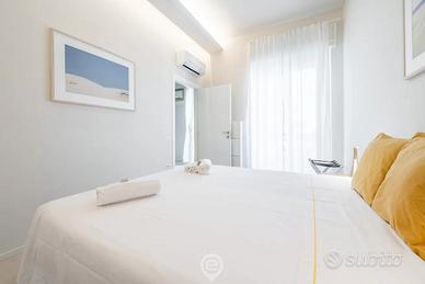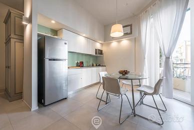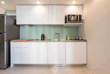 L'appartamento si compone di una camera matrimoniale, un bagno moderno e un luminoso soggiorno con angolo cottura. Gli arredi di design e le dotazioni moderne, tra cui aria condizionata, Smart TV, Wi-Fi, cucina completa, lavatrice e lavastoviglie, garantiscono un soggiorno confortevole. Il balcone privato offre un piacevole spazio esterno per godere dell'aria fresca.