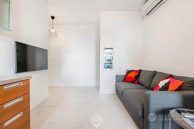 L'appartamento, arredato con gusto contemporaneo, si compone di un'ampia e luminosa zona giorno con angolo cottura completo di lavastoviglie e microonde, una spaziosa camera da letto matrimoniale e un bagno moderno e funzionale. Completa la proprietà un balcone privato, ideale per rilassarsi o consumare i pasti all'aperto.