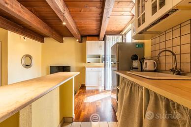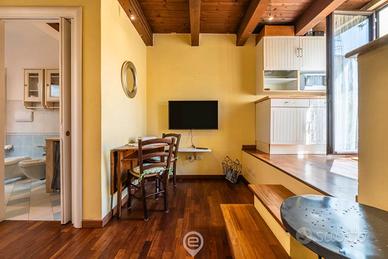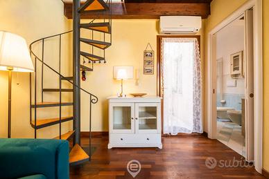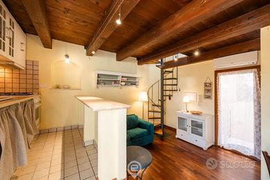 Al piano principale si trova la zona giorno con soggiorno e angolo cottura, mentre il livello superiore ospita una camera matrimoniale climatizzata e un bagno finestrato con doccia. La presenza del soppalco valorizza gli spazi e contribuisce a rendere l'ambiente dinamico e piacevole. L'immobile dispone inoltre di un balcone, perfetto come sfogo esterno.