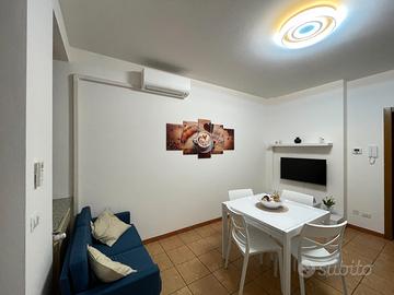 Affitto bellissimo bilocale di circa 50m² con riscaldamento autonomo, situato al piano terra in un piccolo condominio con poche unità abitative in zona tranquilla, 5 minuti a piedi da supermercato e farmacia, posta banca ecc.. Completamente arredato a nuovo (dotato di lavastoviglie, lavatrice, asciugatrice, condizionatore, TV). Libero da gennaio 2026. Condizioni della locazione: canone mensile 550 euro + 100 euro di spese (condominiali + consumo acqua). Le spese per le utenze luce e gas NON sono comprese nel prezzo.