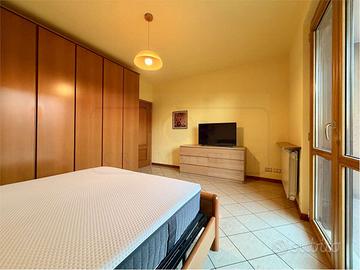 In contesto di corte senza spese condominiali, affittasi ampio due locali di 64mq, completamente arredato e composto da ingresso, soggiorno con cucina a vista, balcone, disimpegno, camera da letto, secondo balcone e bagno con doccia finestrato.