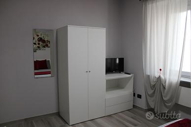 Il bilocale è composto da una camera con letto matrimoniale, armadio, smart Tv, cassetta di sicurezza; zona giorno con cucina completamente attrezzata e accessoriata, forno elettrico, microonde, piano cottura a induzione, macchina del caffè nespresso, divano letto a 2 posti, smart Tv, asse e ferro da stiro; ampio bagno con doccia, wc, bidet, asciugacapelli e lavatrice.