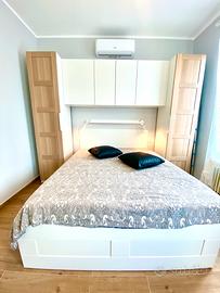 La camera da letto è arredata con letto matrimoniale/contenitore, armadio a ponte e armadio 3 ante.
