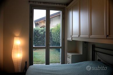 Al'interno del Borgo di Camuzzago, completamente ristrutturato nel 2011, appartamento al piano terra composto di ampia zona giorno , ampio bagno e camera, completamente arredato con mobili su misura e cucina in marmo di Carrara. La parte del Borgo in cui si trova l'appartamento non è stata ristrutturata ma costruita ex novo. La proprietà ha giardino privato e recintato sia anteriore dotato di portico (con accesso alla zona giorno), sia posteriore (con accesso dalla camera) entrambi ben fruibili oltre a vaste zone vedi condominiali. la proprietà comprende anche una cantina di circa 4 metri quadri, dotata di prese elettriche. Riscaldamento con caldaia centralizzata ma con termostato autonomo , con fancoil ad aria fredda e calda. Le stanze sono molto luminose . Nelle immediate vicinanze centro sportivo con piscina e campo da golf e ampio parcheggio all'ingresso del borgo. Spese condominiali contenute e comprensive di riscaldamento e aria condizionata e di acqua calda e fredda, ovviamente da conteggiarsi in base ai consumi.