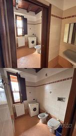 Un pratico disimpegno porta al bagno finestrato, completo di doccia e attacco per lavatrice.