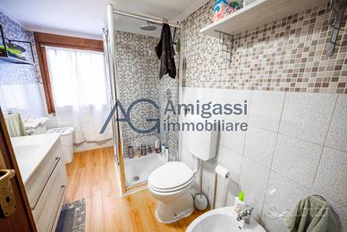 Amigassi Immobiliare propone in vendita ad Albino centro, vicinanze fermata TEB, bilocale termoautonomo con posto auto di proprietà esclusiva, privo di spese condominiali. Entriamo dalla balconata esclusiva con cancellino ed accediamo al soggiorno con cucina open space (camino e stufa a pellet); bagno ben tenuti, finestrato, con angolo lavanderia. Al piano superiore, mansardato, si ha la grande camera da letto con lucernari, una piccola stanza e la cabina armadio. Aria condizionata con pompa di calore sia in zona notte, sia in zona giorno.