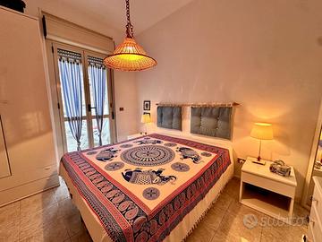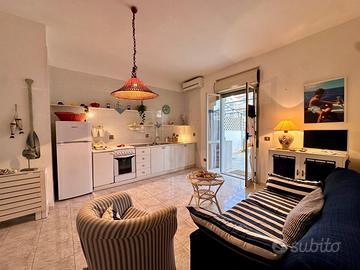 L'ingresso si apre su un luminoso soggiorno con angolo cottura; da qui, tramite porta finestra, si accede all'ampio terrazzo a livello con affaccio sul mare: uno spazio ideale da vivere nelle belle giornate, perfetto per pranzi e momenti di relax all'aperto, godendo del piacevole clima mediterraneo.