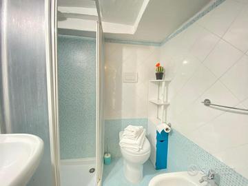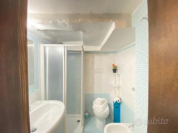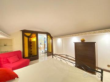 Un disimpegno ci conduce alla zona notte, composta da una spaziosa camera da letto matrimoniale, e da un bagno completo, dotato di tutti i sanitari, lavabo e box doccia.