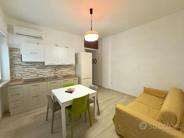 L'ingresso apre su un comodo soggiorno con angolo cottura, zona pranzo e divano. La zona notte, comprende una spaziosa camera da letto, in grado di ospitare un letto matrimoniale e un letto singolo, illuminata da un'ampia finestra.