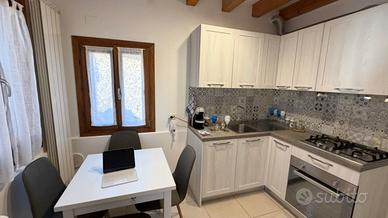 Nel suggestivo centro storico di Sottomarina, tra la laguna del Lusenzo e a pochi passi dalla spiaggia, Officina Abitare propone in vendita un grazioso appartamento bilocale al piano terra. L'immobile si trova all'interno di una piccola palazzina composta da sole quattro unità abitative con cortile condominiale. L'appartamento è venduto completo di arredo ed è composto da, zona un soggiorno/pranzo funzionale con angolo cottura dotato di cucina completa (forno, piano cottura a gas, lavello doppio), numerosi pensili per ottimizzare lo spazio ed elettrodomestici. Il tavolo da pranzo ospita comodamente quattro persone ed è posizionato vicino alle finestre per godere della luce naturale durante i pasti o mentre si lavora/studia. La camera matrimoniale offre comfort sia per coppie che famiglie: oltre al letto principale dispone anche di letto a castello aggiuntivo. Le finiture sono curate nei dettagli - dai soffitti travati a vista ai pavimenti chiari -, creando un ambiente caldo e accogliente. Bagno finestrato dal design contemporaneo garantisce praticità quotidiana. Posizione strategica: tutti i principali servizi (negozi alimentari, bar tipici, fermate autobus) sono raggiungibili comodamente a piedi così come la spiaggia distante solo pochi minuti dall'abitazione. Perfetto punto d'appoggio sul mare oppure ottimo investimento turistico data l'elevata richiesta.