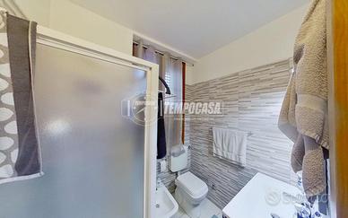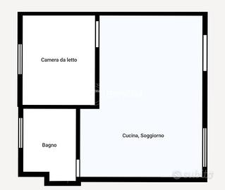 La zona notte ospita una camera, di dimensioni moderate ma graziosa, mentre il bagno finestrato con box doccia completa la soluzione con funzionalità e luce naturale.