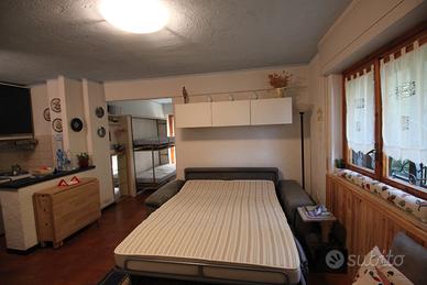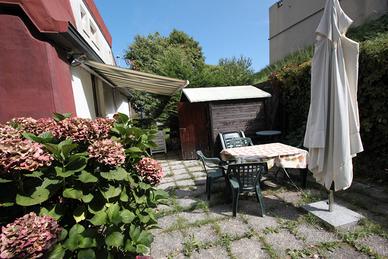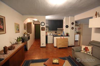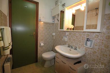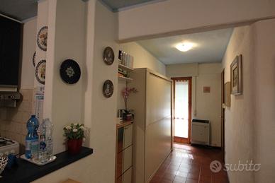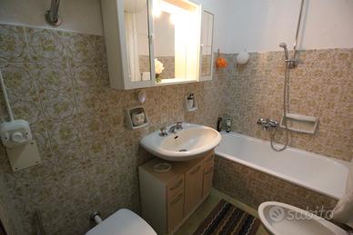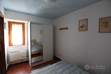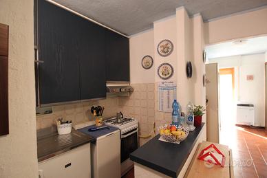 Bilocale di 40 mq. calpestabili al 2° piano di condominio con ascensore. Comprende un riservato giardino di proprietà di 95 mq. E' composto da corridoio d'ingresso arredato con un capace mobile dispensa e porta di accesso al piccolo ma completo bagno. Zona giorno con grande tavolo allargabile, nuovo divano letto matrimoniale, impianto TV satellitare e digitale terrestre, angolo cottura separato contenente forno, frigo e lavatrice, una porta finestra che conduce ad un lato del giardino. Corridoio, attrezzato con letto a castello a scomparsa, che porta alla camera e alla porta di accesso all'altro lato del giardino. Camera matrimoniale con armadio a porte scorrevoli. Il riscaldamento è garantito da una stufa a pellet nella zona living e da due termoconvettori a gas metano, uno in camera e uno nel corridoio utilizzati esclusivamente per portare in breve tempo in temperatura l'alloggio, poi è sufficiente la stufa a pellet con un consumo nelle 24 ore leggermente superiore ad un sacco di pellet da 15 kg.