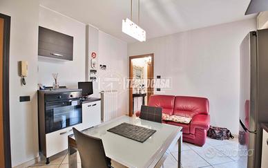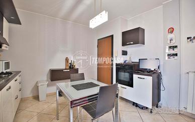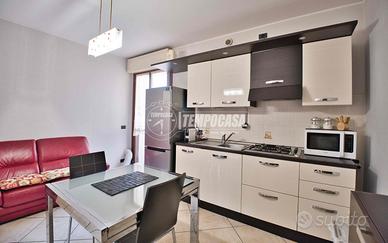 Entrando, si viene accolti da un comodo soggiorno con cucina a vista, perfetto per momenti di relax o per ricevere ospiti in un ambiente moderno e funzionale. Un disimpegno conduce alla zona notte, composta da una camera matrimoniale accogliente e da un bagno finestrato dal design curato.