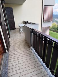 Scopri un bilocale al primo piano di un condominio ristrutturato, con ampio terrazzo e vista panoramica sull'alta valle Seriana. Gli interni, con legno di abete massello, creano un ambiente accogliente.
