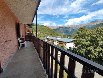 Ingresso a corridoio, soggiorno con angolo cottura, con zona notte divisa da parete scorrevole, ampio balcone con vista aperta,camera da letto con balcone.