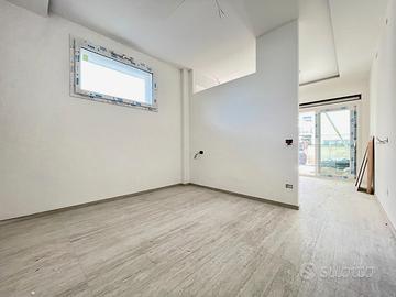 L'ingresso apre sulla zona giorno con angolo cottura. Distribuzione semplice e funzionale, senza spazi inutili. Soffitti alti circa 2,90 m che aumentano la percezione del volume interno.