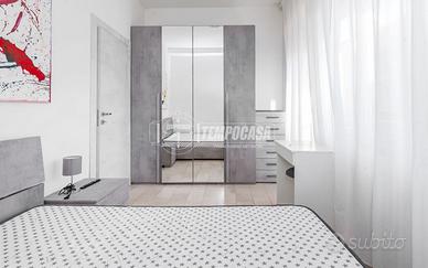 L'immobile è così composto: Ingresso su soggiorno con cucina a vista, camera adiacente separata da una parete non portante, che permette se desiderato di ampliare la zona giorno e creare un ampio living open space con uscita diretta sul balcone, camera matrimoniale luminosa anch'essa con accesso al balcone principale e bagno finestrato, con balconcino privato perfetto per stendere o come spazio di servizio.