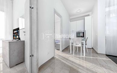 L'immobile è così composto: Ingresso su soggiorno con cucina a vista, camera adiacente separata da una parete non portante, che permette se desiderato di ampliare la zona giorno e creare un ampio living open space con uscita diretta sul balcone, camera matrimoniale luminosa anch'essa con accesso al balcone principale e bagno finestrato, con balconcino privato perfetto per stendere o come spazio di servizio.