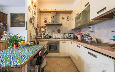 Ingresso su soggiorno con angolo cottura: un ambiente accogliente e funzionale che unisce la zona giorno e la cucina, ottimizzando gli spazi e garantendo luminosità naturale, accesso al balcone direttamente dalla zona giorno.
