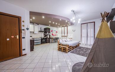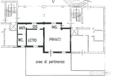 INTERNO: Appartamento ben distribuito composto da ingresso, ampio soggiorno con cucina a vista, disimpegno notte, camera matrimoniale, antibagno con possibilità di ricavare angolo lavanderia e bagno.