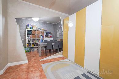 tramite scala interna in muratura si accede al piano interrato dove troviamo un ampia taverna, un bagno/lavanderia e il box.