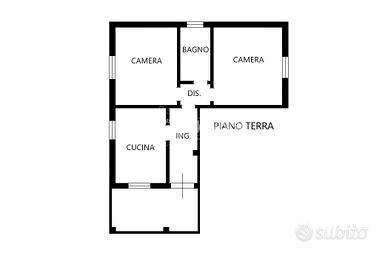 L'accesso all'immobile è direttamente dal giardino privato: una comoda veranda riparata ci porta al disimpegno di ingresso che divide cucinotto e soggiorno; nel disimpegno notte troviamo la camera matrimoniale e il bagno.