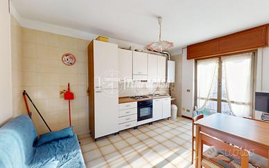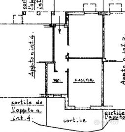 Si tratta di un alloggio, così composto: ingresso su piccolo giardino privato, corridoio, camera da letto matrimoniale con portafinestra e uscita sullo sfogo esterno, bagno finestrato con vasca, soggiorno con angolo cottura e uscita su ampio balcone.