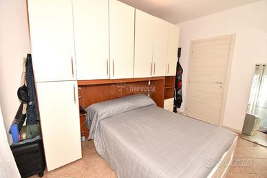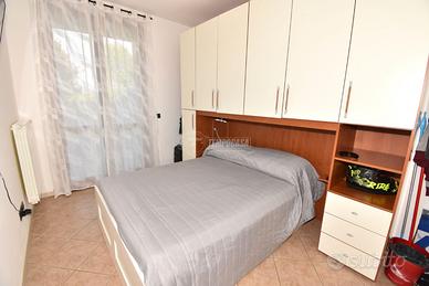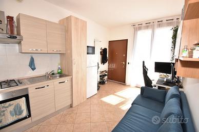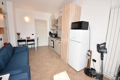 L'immobile è così composto: ingresso con luminoso soggiorno, cucina a vista ed accesso all'esterno tramite porta finestra; disimpegno; bagno finestrato con box doccia; camera matrimoniale anch'essa con accesso diretto all'esterno.