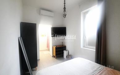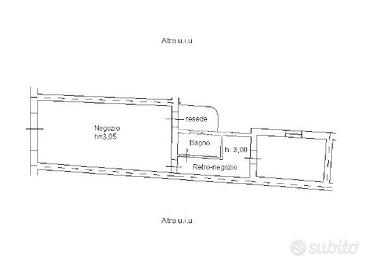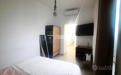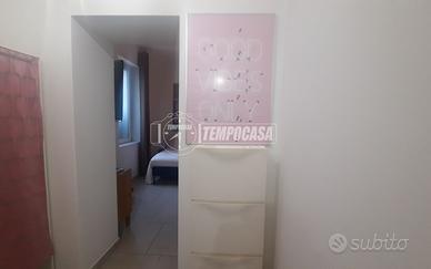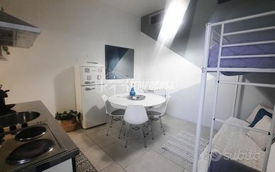 L'immobile si compone di: ingresso su soggiorno con cucina a vista, disimpegno che conduce alla zona notte, bagno finestrato con box doccia, camera da letto. Una vetrina negozio con un locale su strada.