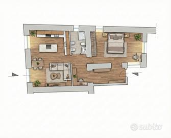 L'immobile dispone di ingresso indipendente da strada che conduce direttamente nella zona soggiorno con cucina living, un ambiente pratico e ben distribuito. Proseguendo troviamo il bagno con vasca e la camera da letto, caratterizzata da doppia esposizione che garantisce ottima luminosità e una piacevole aerazione naturale, rendendo l'ambiente arioso e accogliente. Dal disimpegno si accede inoltre al secondo ingresso con affaccio sul cortile interno, elemento che dona ulteriore comodità e versatilità agli spazi.