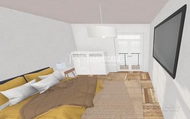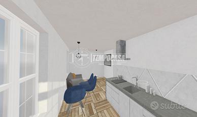 L'immobile di 65mq è su due livelli si trova al primo piano di una soluzione semi indipendente ed è composto da ingresso su disimpegno con camera matrimoniale con porta finestra che dà accesso sul balcone, bagno con doccia e soggiorno con angolo cottura sempre con porta finestra che affaccia sul balcone ideale per godersi momenti di relax. Dalla parte del disimpegno sono presenti le scale che portano alla parte della soffitta dove c'è la possibilità di ricavare un ulteriore bagno e camera.