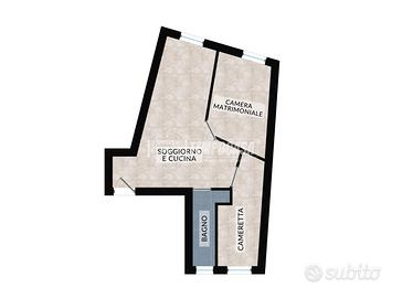 L'appartamento è composto da: soggiorno open space con angolo cottura, camera matrimoniale, una seconda stanza utilizzabile come cameretta o studio e bagno finestrato con box doccia.