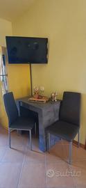 L'ingresso si apre su un luminoso soggiorno con angolo cottura, ben organizzato e accogliente, che conduce alla camera matrimoniale e al bagno finestrato. All'esterno troviamo una veranda coperta perfetta per pranzare all'aperto e un ampio terrazzo privato, ideale per rilassarsi o prendere il sole, accessibile sia tramite scala a chiocciola privata che da scala condominiale.