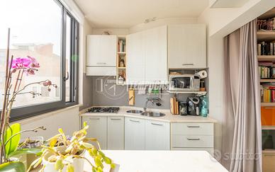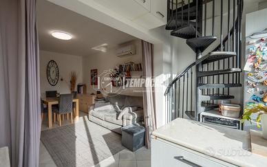 In zona tranquilla e ben servita, proponiamo in vendita BILOCALE di 70 mq, articolato su due livelli, secondo e terzo piano (ultimo piano) di uno stabile signorile del 2003, in perfette condizioni.