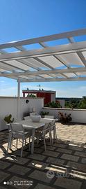 In residence di recente costruzione, a pochi passi dalle più belle spiagge di Baia Verde, esclusivo Appartamento bilocale di 45 mq con terrazzo vista mare. Soggiorno con angolo cottura e divano letto matrimoniale, camera da letto matrimoniale e bagno. Balcone vivibile con piccolo angolo cottura per pranzi all'aperto. Terrazza attrezzata di 40 mq con pergolato in legno Unopiu per le cene all'aperto con gli amici. Climatizzatori caldo /freddo. Gas metano. Tende da sole. Infissi a taglio termico. Porta blindata. Ascensore. Arredato con cura. Ottimo investimento. Solo realmente interessati.