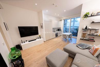 Fenixgroup - Via Bergamo 11 propone in vendita esclusiva un elegante appartamento con terrazzino loggiato in Via Watt, nel cuore di una delle aree più dinamiche e creative di Milano.L'immobile, di circa 70 mq, è situato al primo piano di uno stabile di recente costruzione in classe energetica A1, dotato di ascensore e servizio di portineria 24/7. Attualmente configurato come bilocale, presenta una moderna suddivisione degli spazi grazie a pareti in vetro che donano luminosità e continuità visiva.L'appartamento si apre su un ingresso con disimpegno che conduce all'ampia zona giorno con cucina a vista, caratterizzata da grandi aperture sul terrazzino loggiato, affacciato sulla tranquilla corte condominiale. La camera da letto, separata da eleganti pareti vetrate, è seguita da un bagno finestrato completo di box doccia.Le finiture interne sono di alto livello: pavimentazione in gres porcellanato effetto legno rovere, riscaldamento a pavimento centralizzato con gestione autonoma, raffrescamento indipendente e impianti di ultima generazione - ottima proposta poichè viene venduta e fornita di tutto l'arredo presente in foto.Lo stabile offre servizio di security che garantisce maggior tutela allo stabile.Via Watt sorge in una zona dal fascino unico, tra moda, arte e design, a pochi passi dal Naviglio Grande, da Tortona e San Cristoforo. Il quartiere offre un perfetto equilibrio tra vivacità urbana e charme milanese, con locali, gallerie d'arte, installazioni di street art, edifici storici e suggestivi scorci lungo i canali.La posizione è ottimamente servita dai mezzi pubblici: tram 2 (diretto al Duomo), bus 47, 74, 95, 98, 325, 351 e la circolare 90/91, che garantiscono rapidi collegamenti con tutta la città. Una soluzione ideale per chi cerca comfort, design e qualità abitativa in una delle aree più ricercate di Milano.Questa descrizione ha valore puramente indicativo e non costituisce elemento contrattuale.