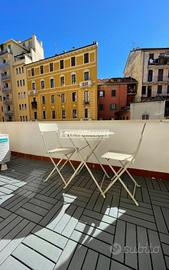 Inserito in un curato stabile di fine anni '50, l'immobile si presenta con una distribuzione degli spazi funzionale e ben studiata. L'ingresso conduce a un disimpegno che apre su un luminoso soggiorno con cucina a vista su misura, progettata per ottimizzare ogni spazio, affiancata da un comodo ripostiglio. Dal living si accede direttamente al terrazzo, che diventa una naturale estensione della zona giorno.