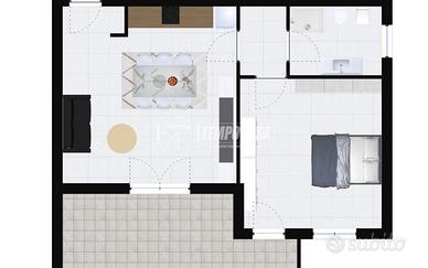 L'ingresso si apre su una luminosissima zona giorno con cucina a vista e accesso diretto a un comodo terrazzino, perfetto per i momenti di relax all'aperto. Un disimpegno conduce alla zona notte, composta da una camera matrimoniale con seconda uscita sul terrazzo e da un bagno finestrato dotato di box doccia.